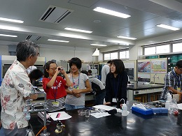 講義及び実験の指導は、生産システム工学系ACグループの脇中先生と研究室のメンバーが担当しました。まず、土の性質を知るために、2種類の土を用いて、最強の泥だんご作りを行いました。受講生は、各自で水や土の量を調整し、様々な硬さの泥だんごを作りました。次に、洗面器に土とピンポン玉を入れて、液状化の実験を行い、液状化の仕組みを学習しました。最後は、家庭でも液状化の学習ができるように、ペットボトルを利用した液状化の教材を作りました。